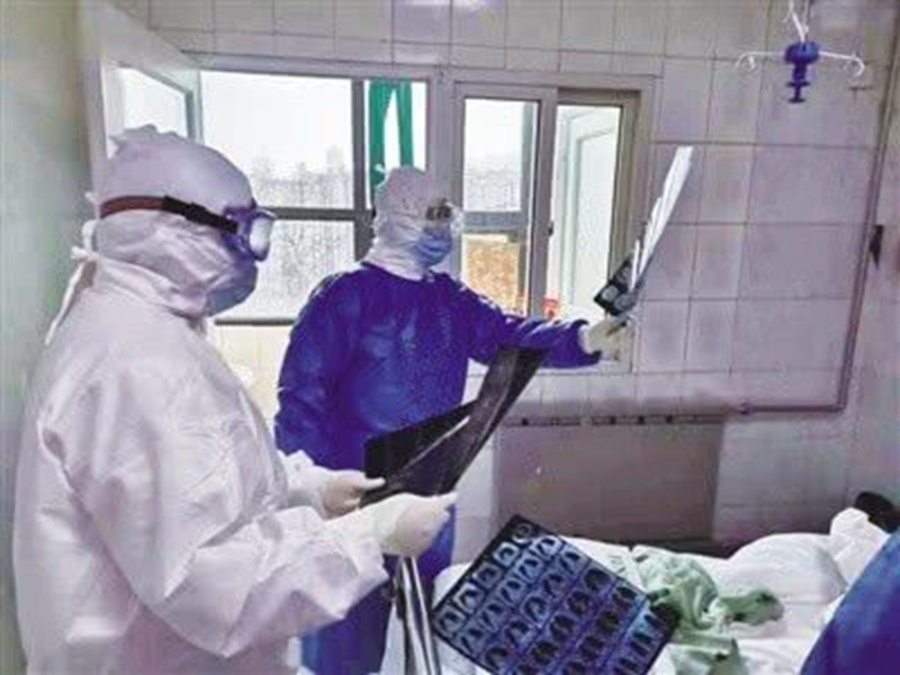 (九三社员、内蒙古医科大学附属医院呼吸科副主任医师徐磊在湖北荆州查房)