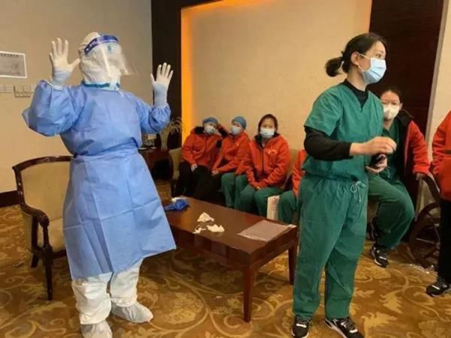 (九三社员、内蒙古人民医院保健所重症监护室护士长吴燕在给护理队队员讲解)