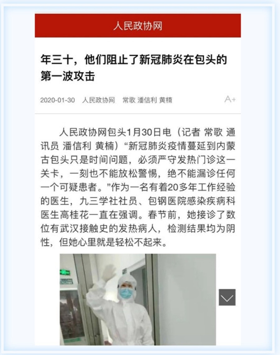 (人民政协网报道包头社员高桂花医生的事迹。)