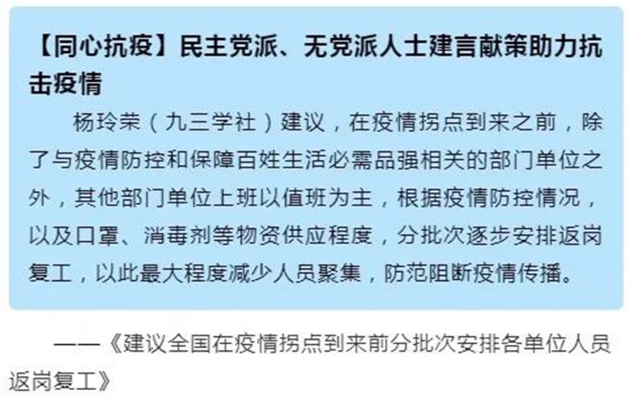 九三学社内蒙古区委全面贯彻落实中央、自治区疫情防控工作各项决策部署的同时,心系疫情,下发通知组织社区委各级组织和广大社员发挥参政党职能,积极建言献策。社员们紧紧围绕疫情防控的难点重点,结合自身行业和专业所长,建诤言、献良策、出实招,为科学防控、精准施策献计出力。社区委第一时间对这些信息进行编辑整理,及时报送社中央、自治区政协、自治区党委统战部等,截止3月5日全区社员累计上报建言献策类信息101篇,社中央、自治区政协和自治区党委办公厅采用多篇。其中:就疫情防控过程中,新冠肺炎儿童预检分诊流程和诊疗方案;发挥国有企业作用、完善一线基层干部防疫防护装备;疫情期间心理干预工作;人与动物及动物之间的疫情传播;抗击疫情志愿者培训等问题提出意见建议,为党委政府决策提供了决策参考,推动了有关方面工作的改进落实,为坚决打赢疫情防控阻击战贡献了智慧和力量。