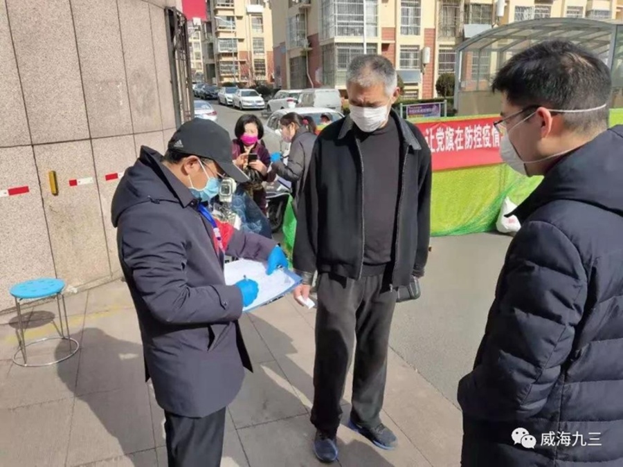 九三学社威海社会服务部部长戚中一、九三学社威海经区支社社员吕卫波、九三学社威海环翠区支社委员刘洪光等社员得知消息后也积极报名参加威海市环翠区竹岛街道办事处四方路社区疫情防控工作志愿者。戚中一在2月11日至17日在鲸园街道办事处戚谷疃社区参加志愿者活动,并积极发动员工参加志愿者队伍;九三学社威海环翠区支社委员刘洪光,自2月6日起至今一直并将继续坚守在环翠楼街道办事处石河社区、竹岛街道办事处同心路社区两个社区分时间段进行志愿者服务,直到疫情结束。九三学社威海经区支社社员、荣成市中康和益成医院院长戴建新组织35人抗疫团队加入到荣乌高速收费站、那香海等哨点值班值守,严格疫情监测,宣贯防疫知识。