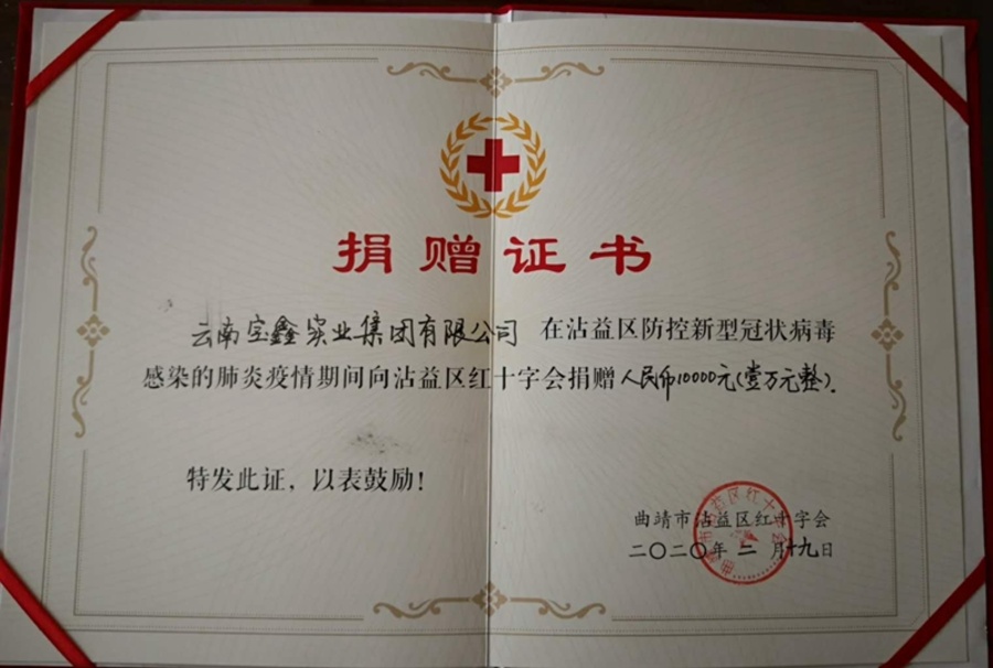 为早日取得战“疫”胜利,九三学社社员、沾益区政协副主席、曲靖博浩生物科技集团股份有限公司总经理柏老六个人及企业为曲靖市经开区、沾益区捐款70万元,九三学社社员、云南宝鑫实业集团有限公司董事长鄯保玉向沾益区红十字会捐赠人民币1万元,用于疫情防控。