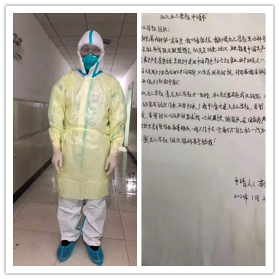 天和支社入社申请人、天津医院内科医生苏留超2019年5月申请加入九三学社。考察期间,他积极参与社务工作,主动赴宝坻小白庄参加义诊活动。疫情发生后,他主动请战,于2020年1月28日随天津市第二批支援湖北医疗队驰援武汉。出发前,他再一次写下入社申请书,表达了志愿做九三人的决心。