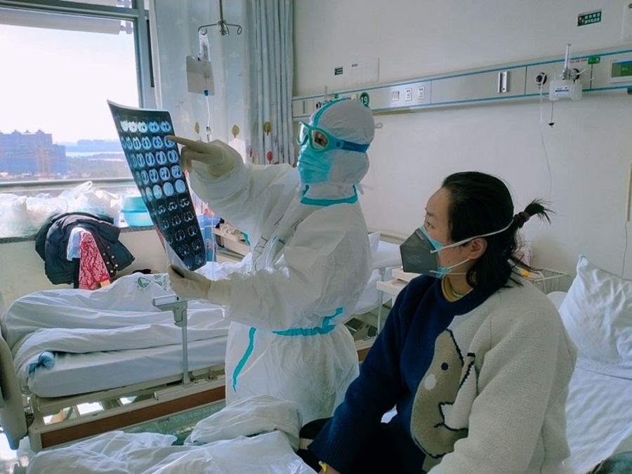 抵达目的地,马肖蓉老师稍事休整立即投入“战斗”,争分夺秒与时间赛跑,全力以赴展开救治患者、抗击疫情。10余天紧张超负荷的工作,马肖蓉老师没有退缩,在救治患者的同时用爱心传递力量,鼓舞患者战胜病毒早日康复回到自己的家中,回到亲人的身边。马肖蓉老师用亲身感受说到:“很多病人纷纷在我们查房结束之后,为我们医护人员竖起了大拇指。我们为了便于沟通,也在我们的防护服上写了,‘西安来了,帮助你们’、‘我们大家一起,病好了就回家了’这些话去鼓励病人。我们相信,通过大家的努力,一定会打赢这场疫情防控的阻击战。”
