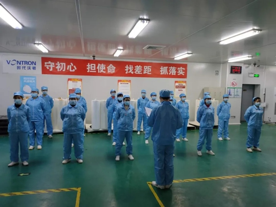 “2月8日,贵州省政府办公厅下发关于有序推进企业项目复产复工的通知后,我们立刻按照通知相关要求于2月9日制定了共十条二十五项的时代沃顿科技有限公司生产现场防控防疫管理细则。细则上对所有复工人员上班报道、温度监控、班前准备、设备维护、地面防护等相关内容都进行了严格规定。”梁松苗说,不仅如此,复工的所有人员,我们都是经过了三轮严格筛选才确定名单,名单人员不仅要满足所在地区截至目前未发现新型冠状病毒肺炎病例,也要满足身体状况符合相关复工人员的条件和要求。