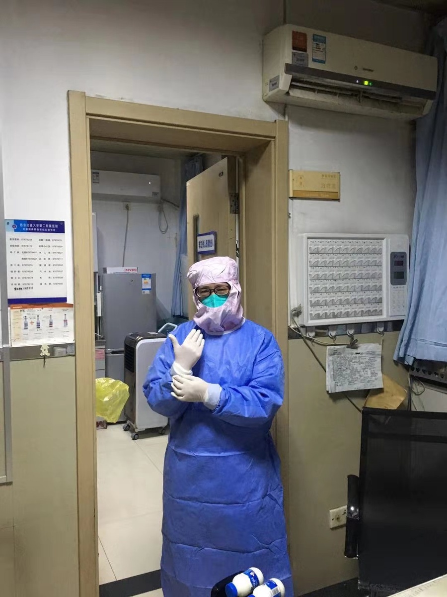 社员王媛身为一名感染科青年骨干医生,自疫情发生以来,奋勇当先,除了完成科室安排的值班各项工作,她积极参与到门急诊预检分诊、发热门诊等志愿服务工作中。问及作为感染科医生为什么还要参加这次志愿服务,她认为,现在发热门诊的病人太多,要减少医生的工作量和普通患者的交叉感染,而自己比其他人更具备区别发热患者去向的专业知识,义不容辞。王媛的丈夫也是医务工作者,疫情发生后他们把孩子交给父母照顾,俩人心无旁骛的投入到工作中。从初六就参加志愿者工作——门诊分诊,对来到分诊台的每一个人进行快速、重点的问诊,收集病人的主诉、伴随的症状、流行病学资料及既往史。将收集的资料进行分析然后分诊,按轻、重、缓、急有计划地安排就诊。力求做到不放过一个疑似新冠状病毒肺炎的患者的同时又尽可能的将其他科室就诊的患者导诊到相应的专科以减轻发热门诊压力,降低交叉感染的风险。一天下来,顾不上吃饭、喝水、上厕所,第二天又继续处理科室的病人......就在这样的繁忙的工作间隙,她还发动周围的同学朋友为二院筹集紧缺的医疗防护品。她总是说自己没做什么了不起的事,总是说“作为一名感染专业的医务工作者,既然选择了这个职业,在当前这种疫情面前,咱不干谁干,咱不上谁上,这不都是应该的嘛!”
