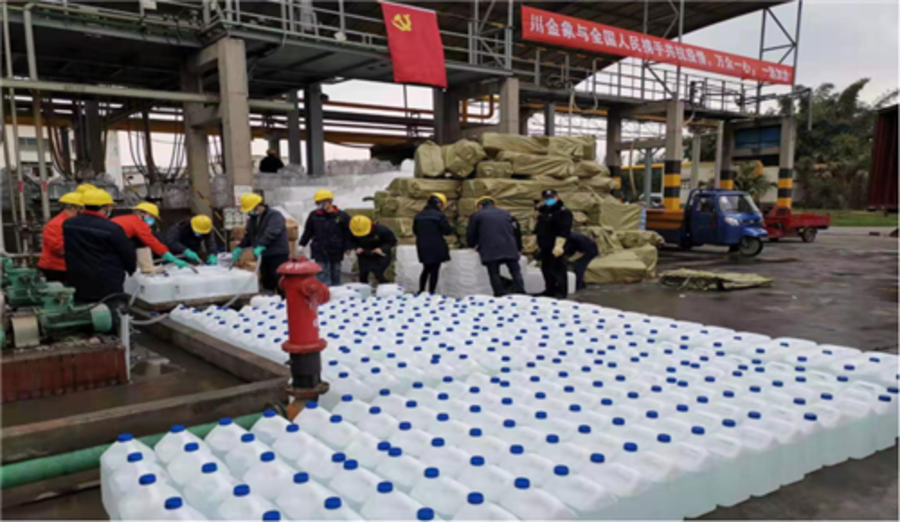 2月3日,在了解到甘孜州已发生3例新型冠状病毒肺炎感染者,急需消毒物资急况后,九三学社眉山市委主委赖崇华与市委委员、四川金象赛瑞公司总裁唐印一致商定,在前期捐赠基础上,由川金象与眉山九三共同向甘孜州政府捐赠当地急需的抗击疫情物资,包括20吨双氧水、400个口罩、10个自动喷雾器等。