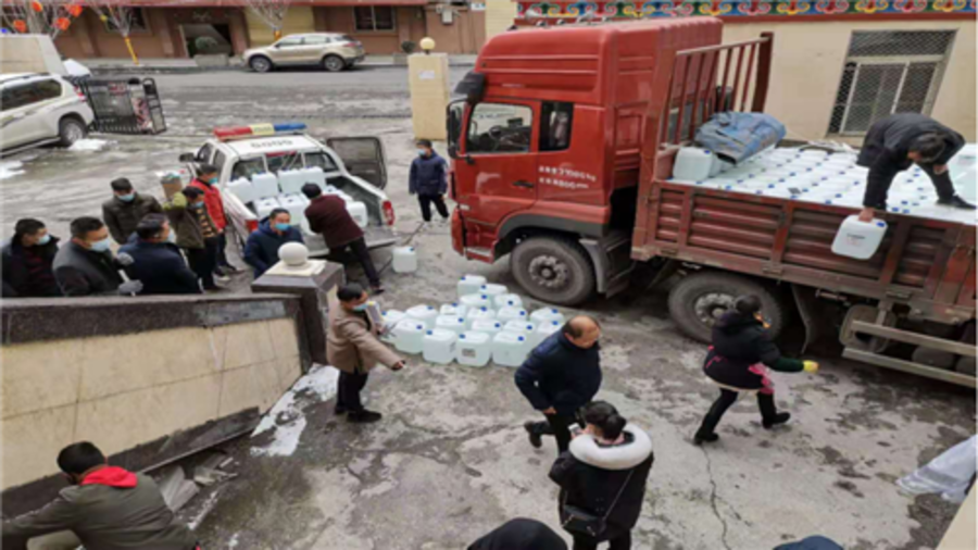 九三学社眉山市委社员郑飞,主动请缨与川金象员工陈建波经理一道,不畏疫情风险,不畏路途艰辛,不畏风雪艰难,挺进甘孜州,将这批物资及时安全护送到甘孜州人民手中,为甘孜州人民带去了战“疫”的希望与保障!