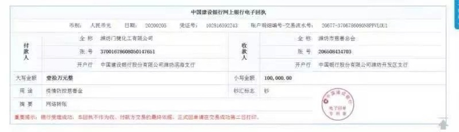社潍坊市高新支社原主委王兵等联合创办的山东绿创碧园生物科技有限公司,从1月31日开始,免费向社会捐赠自主研发的新型消毒液,已累计20吨,价值4万元。