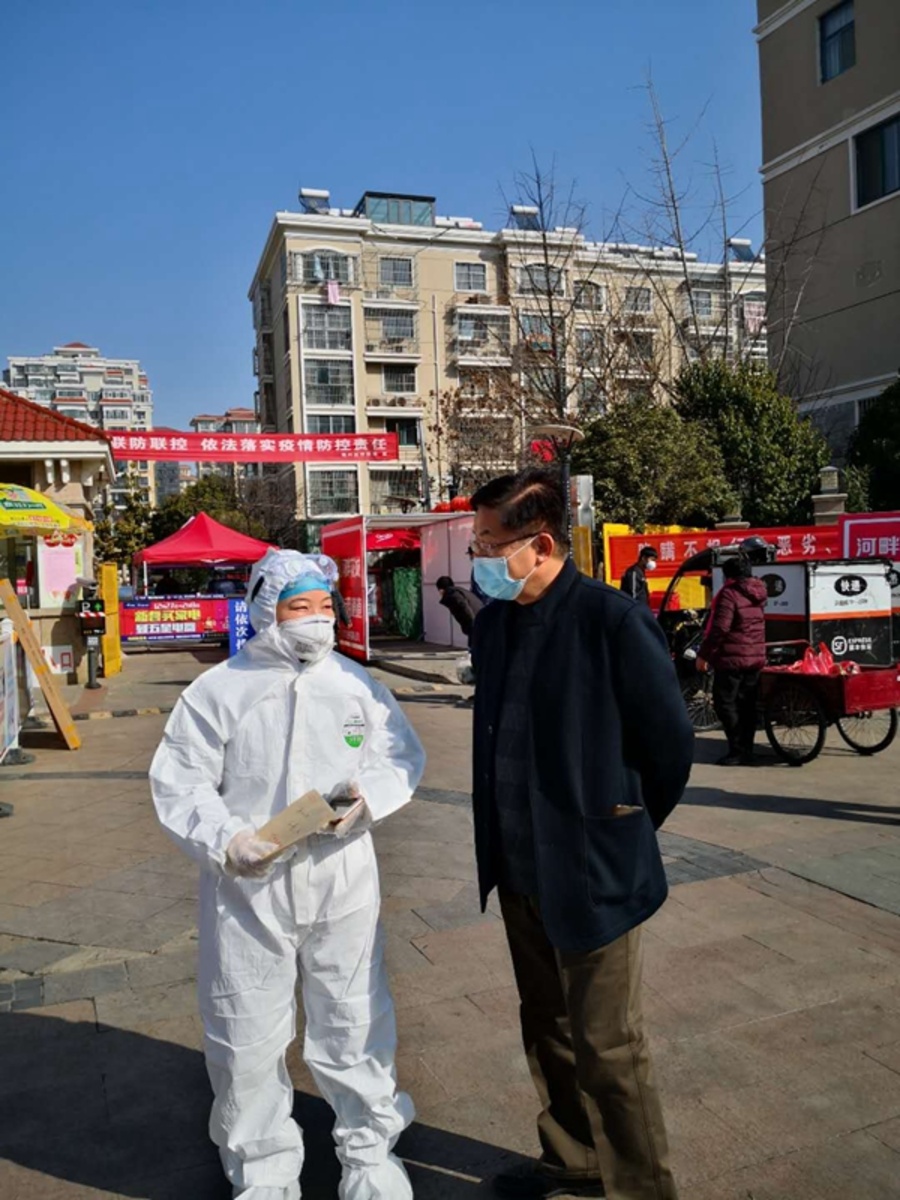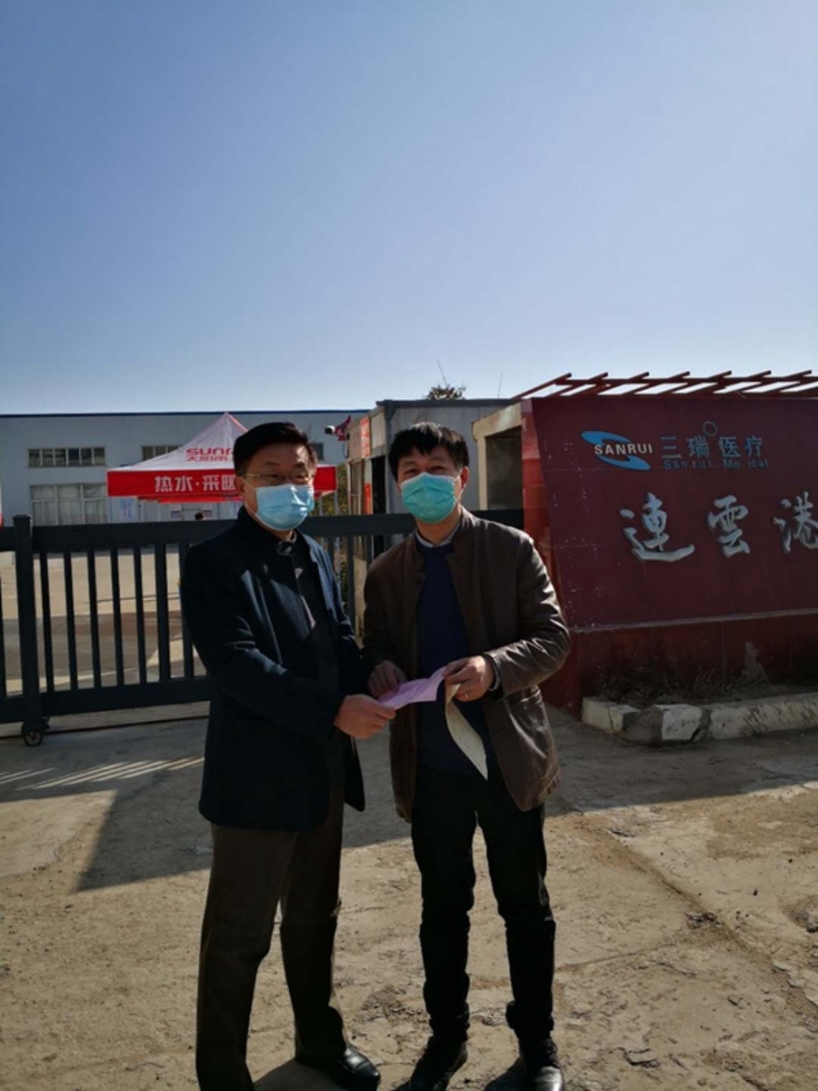 2月22日,社江苏省委副主委、社连云港市委主委徐大勇,社连云港市委专职副主委陈晓平代表社市委分别前往市第四人民医院、市一级隔离防护小区河畔花城工作现场和连云港三瑞医疗器械制造有限公司慰问孟尔旺、陈丹、刘保等奋战在抗疫一线的社员代表。慰问过程中,徐主委一行调研了市第四人民医院开展科学防控、精准防疫的工作情况,参观了三瑞医疗医用口罩生产线,了解企业复工复产等相关情况,在河畔花城隔离小区工作现场,徐主委亲切慰问了疫情发生以来一直坚持战斗在基层一线、至今没有回过家的白衣战士陈丹,询问她的工作、防护和身体健康等情况,并叮嘱她一定要在百忙之中做好防护,确保自身安全和健康。社市委于近期向所有承担疫情防控任务的社员们寄去了慰问信,向前线的战士致以亲切的慰问和崇高的敬意。