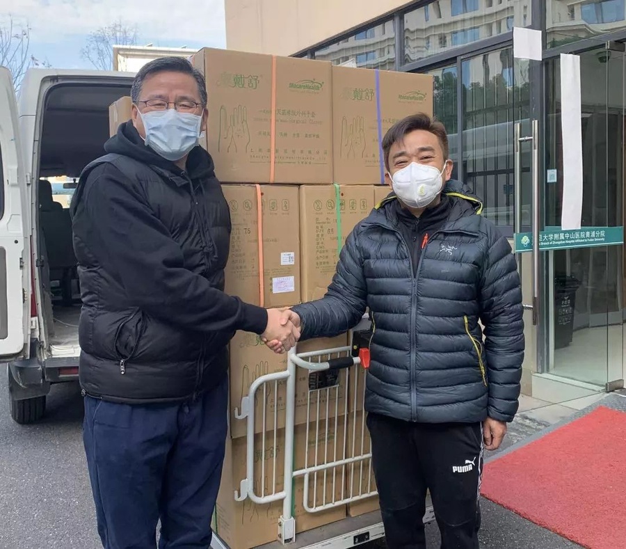在九三学社上海市青浦区委主委朱国健和社员等多方协调努力下,入社积极分子、上海即索实业有限公司董事长王辉忠出资,向朱家角镇政府捐赠8000只口罩,向复旦大学附属中山医院青浦分院捐赠9900副医用灭菌手套,后又捐赠3900副手套支援武汉的上海医疗队。