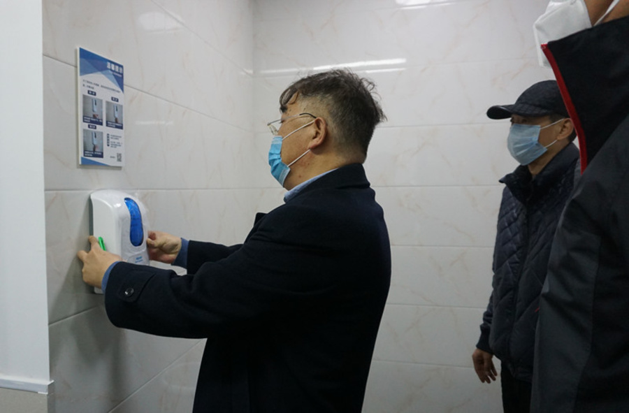 3月11日下午,经社区委专职副主委兼秘书长周梅婴牵线联系,郭富源又一次带着防疫物资,在斜土街道人大工委副主任王莉莉、斜土街道人大工委办公室主任陈洁娟、斜土街道自治办副主任严伟明等带领下,第一时间将病毒灭活免洗手消毒机安装至江南新村邻里汇、日二邻里小汇、景泰邻里小汇、上影邻里小汇等十个居委和居民活动中心,为社区百姓提供贴身守护 ,筑牢抗疫战疫的“第一道防线”。王莉莉和各个居委会主任衷心感谢郭富源的善举。