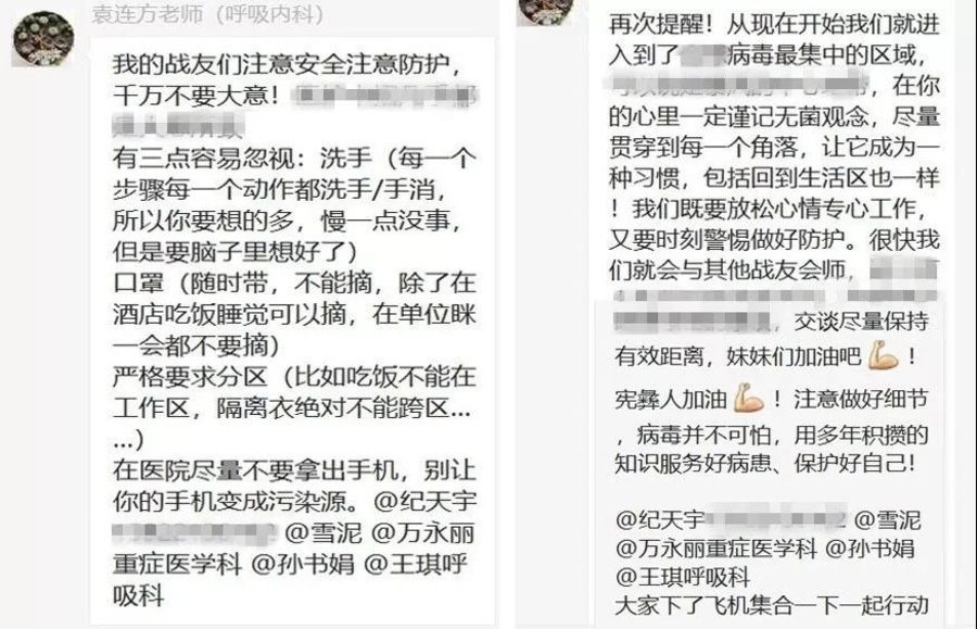 为防止交叉感染,病区内无法用手机拍照。那就让我们看一段袁连方大夫书写在武汉一线的日记——“在家里他们还是父母的小宝儿,在单位他们还是领导的得力臂膀,在这里他们剪掉长发、穿起战袍变身成了真正的勇士,不畏艰难、勇往直前!每一次进入红区都是在和时间赛跑、再向疾病发起冲锋,他们来自不同医院、不同岗位,在这里迅速凝聚成一支强大的队伍,团结一致只为一个目标,战胜疫情!临上战场之前,总会互相细致的检查,确认无误后还会继续鼓励一下,加油!我们一定不负使命,直到胜利!