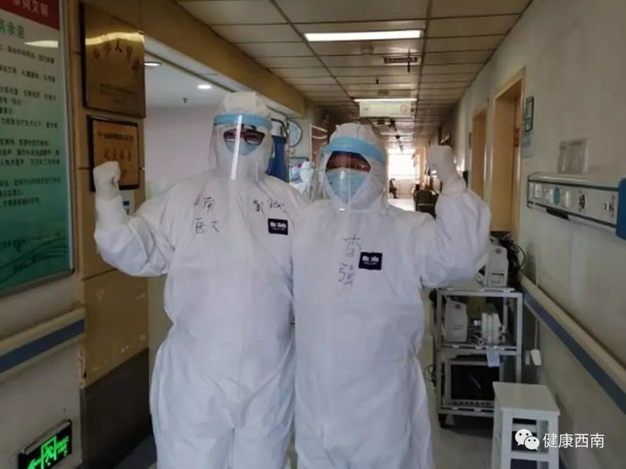 李强是西南医科大学第一批援助医疗队35名队员中年龄最大的,刚开始工作时还遇到一些困难,比如医嘱系统与原所在医院的不一样,作为“60后”医生的他还需适应;而且李强戴有近视眼镜,加上护目镜,又穿着防护服,有时热气起雾半个小时都无法消散,好在队员们都团结协作,相互帮助,很快让李强适应了工作环境。