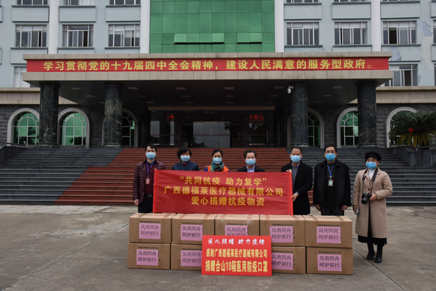 病毒无情,人间有爱。3月30日-31日,九三学社来宾市社员蓝国勇企业广西德福莱医疗器械有限公司向来宾市教育系统捐赠价值20余万元的防疫口罩12万个,助力复学,共同抗疫。