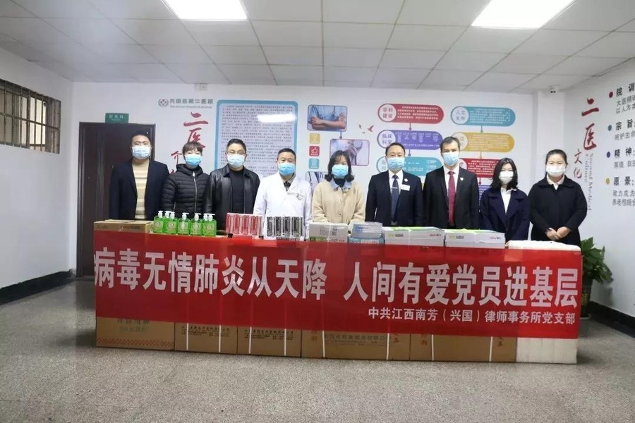 钟坚元,江西南芳(兴国)律师事务所合伙人、主任。他一直关注新型冠状病毒肺炎疫情的动态,当了解到兴国县第二人民医院医疗防控物资紧缺时,第一时间帮助筹集急需的物资。2月7日,他带领律所同事向医院捐赠了20大箱消毒液、20箱洗手液等价值近万元的爱心物资,为助力抗击新冠肺炎疫情尽一份绵薄之力。
