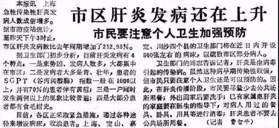 1988年2月3日《解放日报》报道称,肝炎发病人数还在上升。