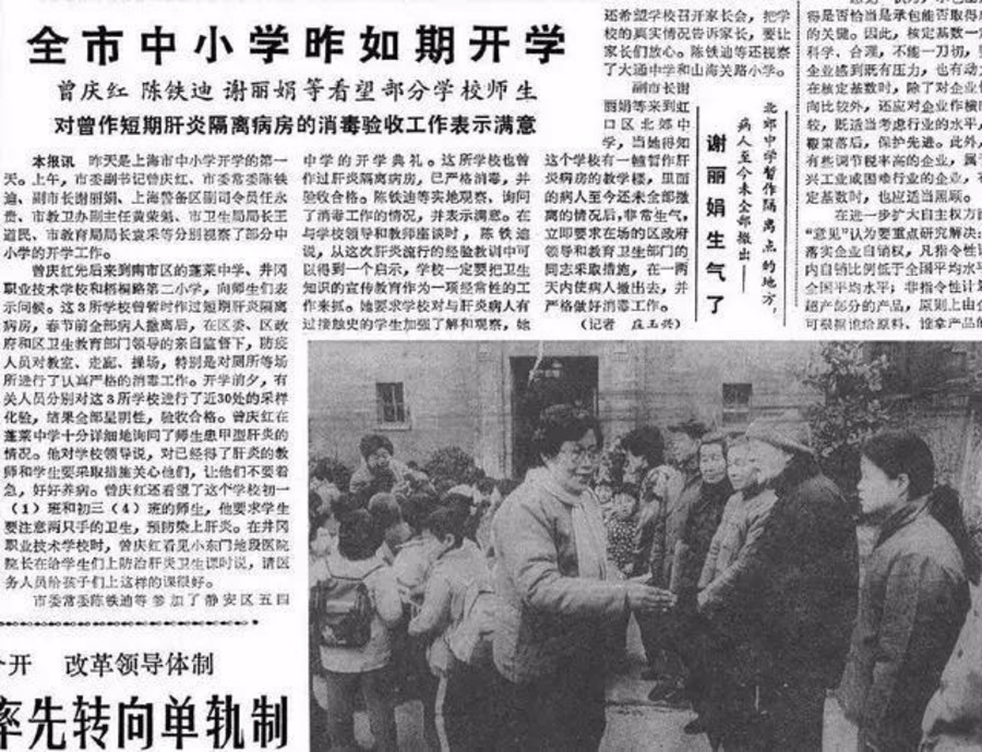 1988年2月26日《解放日报》报道,曾做过甲肝隔离点的学校被严格消毒,全市中小学如期开学。