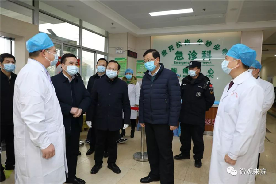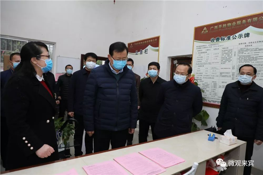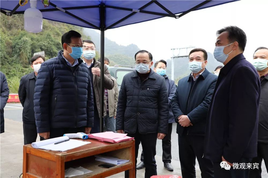 2月5日,自治区副主席、九三学社广西区委主委李彬率队深入来宾市交通路口、乡镇村屯、居民社区、大型超市等地,检查指导新型冠状病毒感染的肺炎疫情防控工作。
