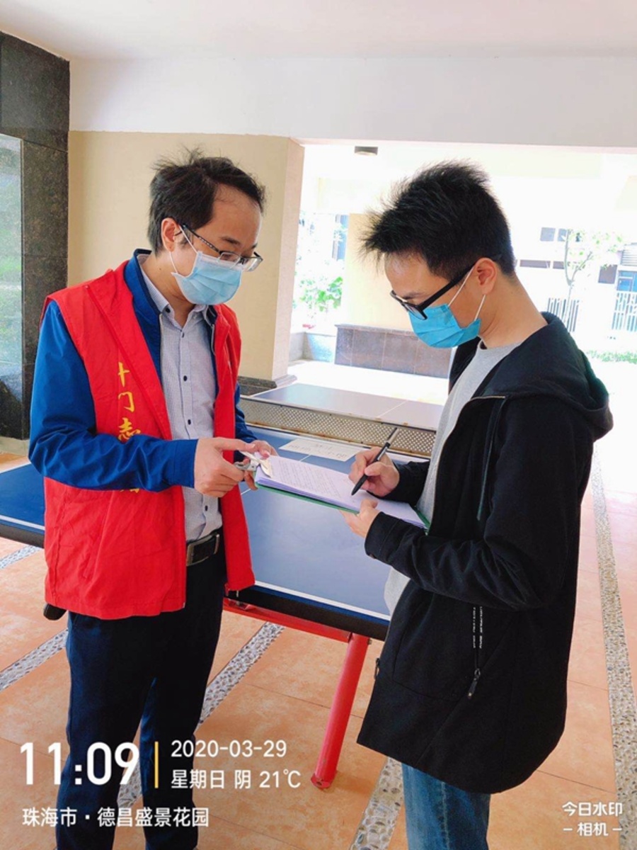 3月29日,九三学社珠海市斗门区基层委员会主委黄小雯第一时间与社区联系,带领部分骨干社员深入社区防疫一线并加入到志愿者的队伍中,协助白藤社区居委会工作人员开展湖北返斗人员排查、信息采集、登记等工作。社员志愿者们按照社区防疫安排确保对湖北返斗人员做到“三个一律”,对排查人员一律发放健康告知书、一律开展健康状况问诊、一律验证来粤人员健康通行码信息,确保社区内疫情管控部分工作落细落实。同时,斗门区基层委员会积极响应斗门区红十字会《关于募集珠海市斗门区疫情防控工作资金和物资的倡议书》,组织社员们筹集善款共计人民币8100元。(九三学社珠海市委 陆孝欣)