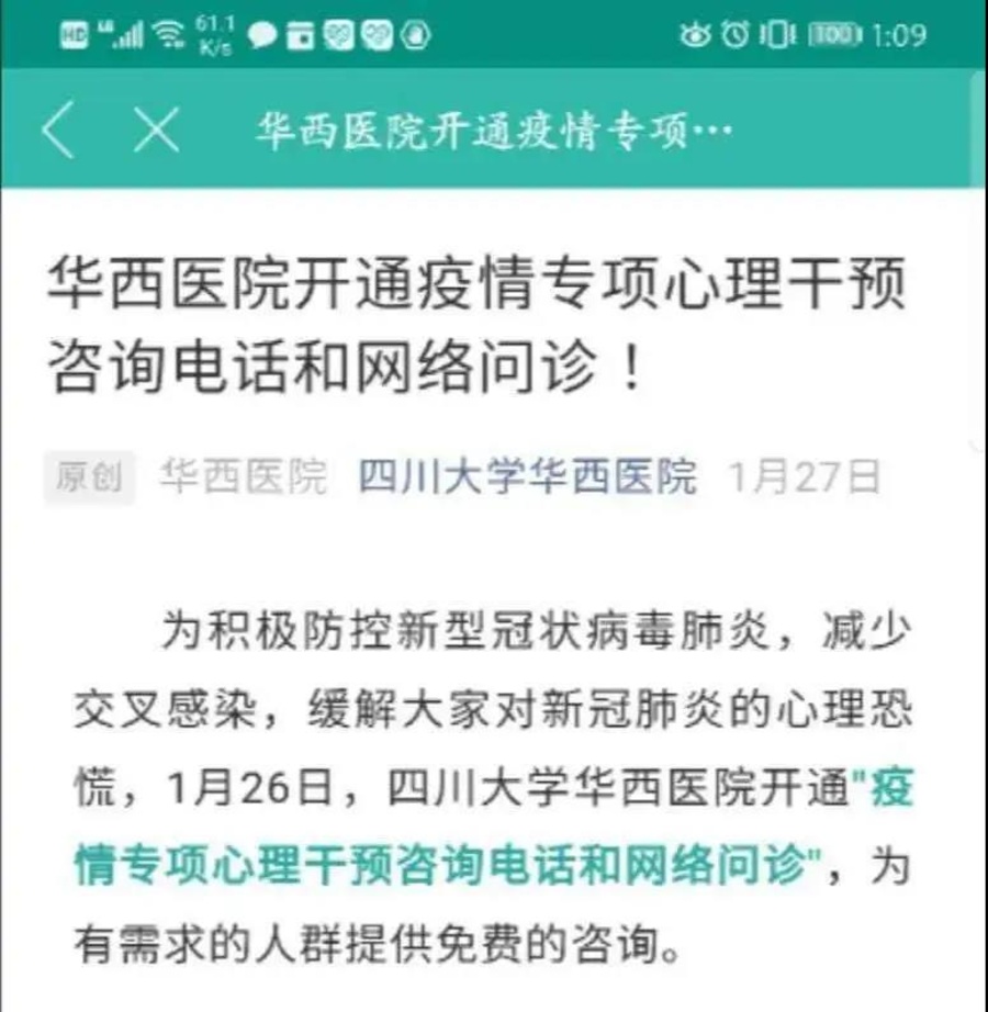 “疫情期间,这是个大问题,我们医院非常有必要开通免费的网络问诊,为广大老百姓提供科学指导服务,让他们坐在家里也能够接受华西的医疗咨询。”