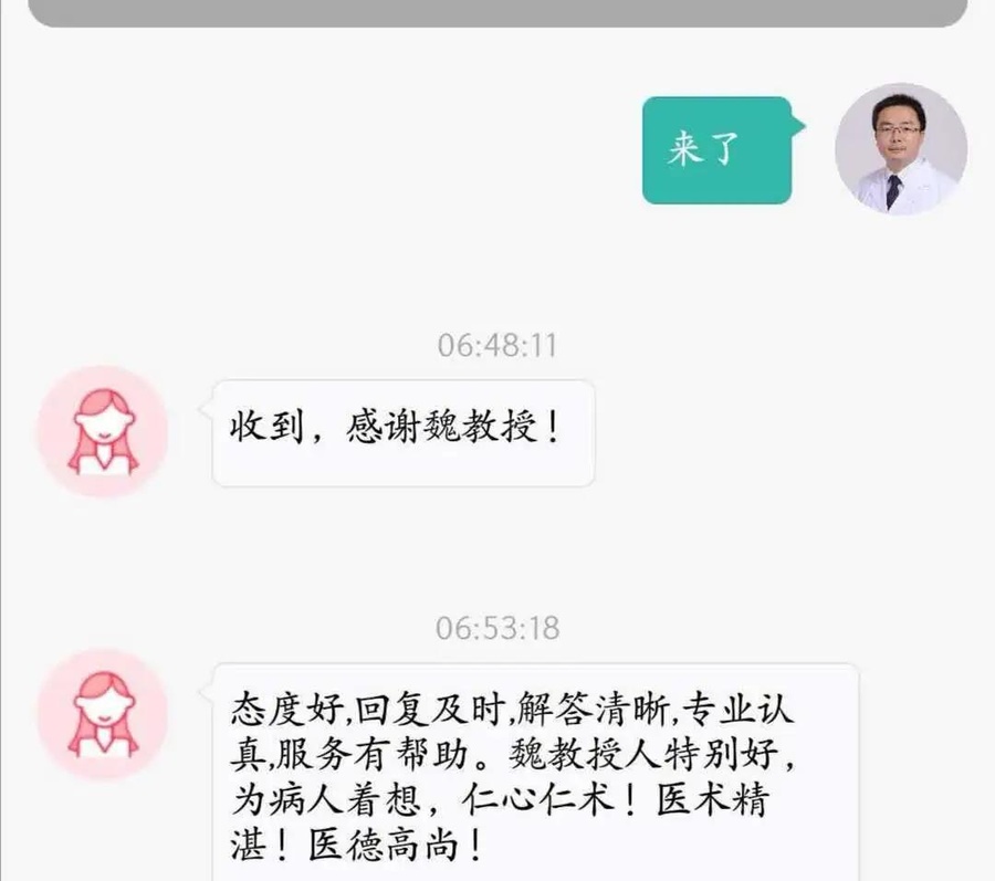 事后,这位患者网上发文致敬杨庆:“我不知道此时此刻说什么好,心里充满着欣喜和对杨庆医生的感谢。你能想象一个医术权威利用中午休息的时间专程跑到病床查看病人情况,说话随和并用简单的比喻讲解病情和治疗方法,做人低调到不可思议!”