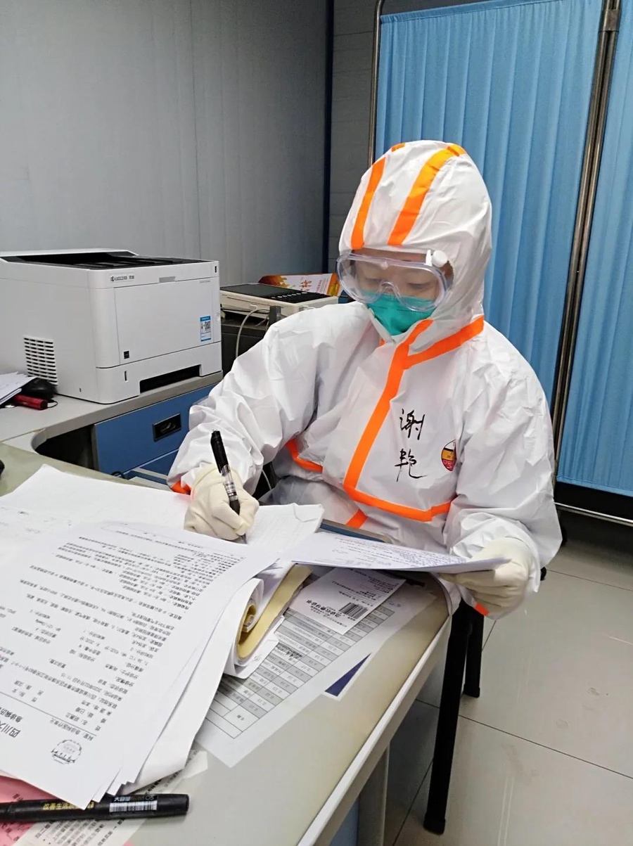 为了节省防护物资,谢艳坚持不喝水、不吃饭、不上厕所,坚守岗位,仔细询问每位患者的流行病学接触史,认真采集咽拭子,测量体温……就这样穿着密不透风的隔离衣,一忙就是一天。