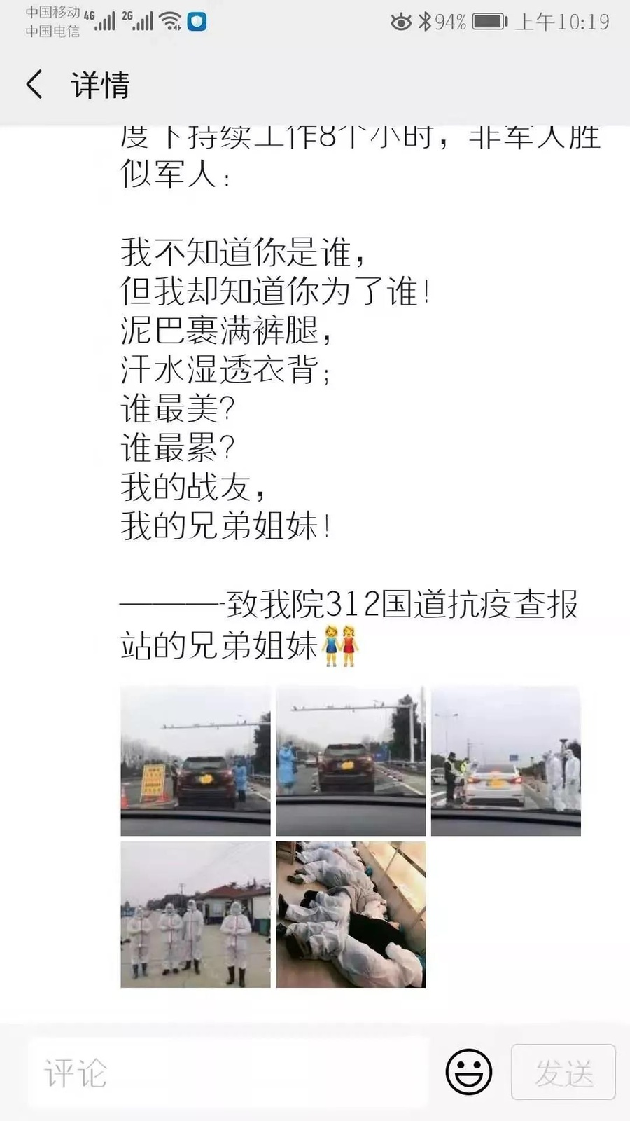 无锡市惠山社区服务中心工作人员,在312国道抗疫查报站露天工作持续工作8个小时,而当时外面气温接近零摄氏度。