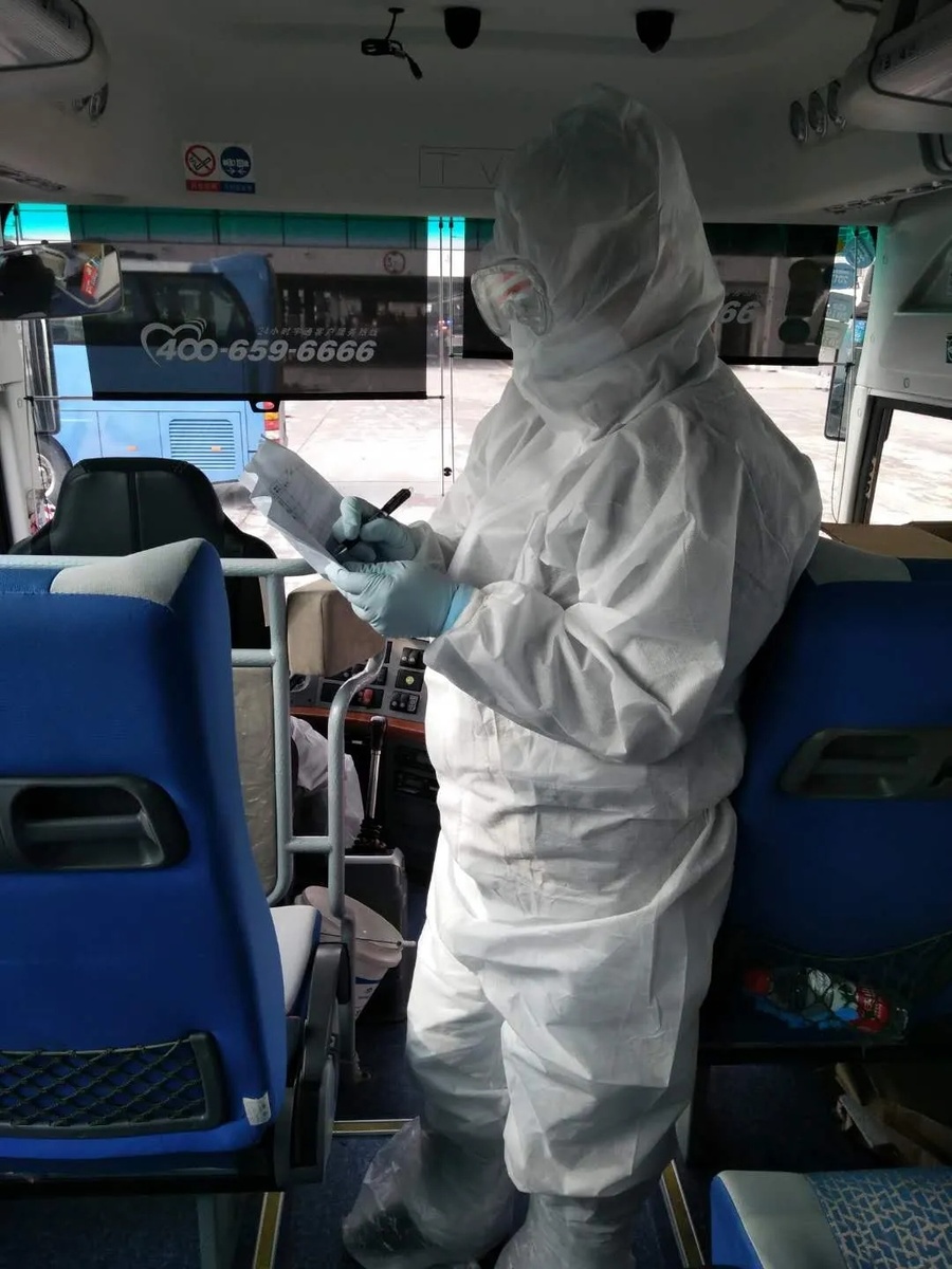 从留验点到浦东机场需要一个多小时,虽然工作并未开始,但是穿上防护服时,身体的消耗却开始计时:在这段时间内不能喝水,不能上厕所,最长的中班要从10:30到17:30,加上路上的时间就更长了。有时,因为需要安排的入境人员多,为了让更多人上车,还要等待。