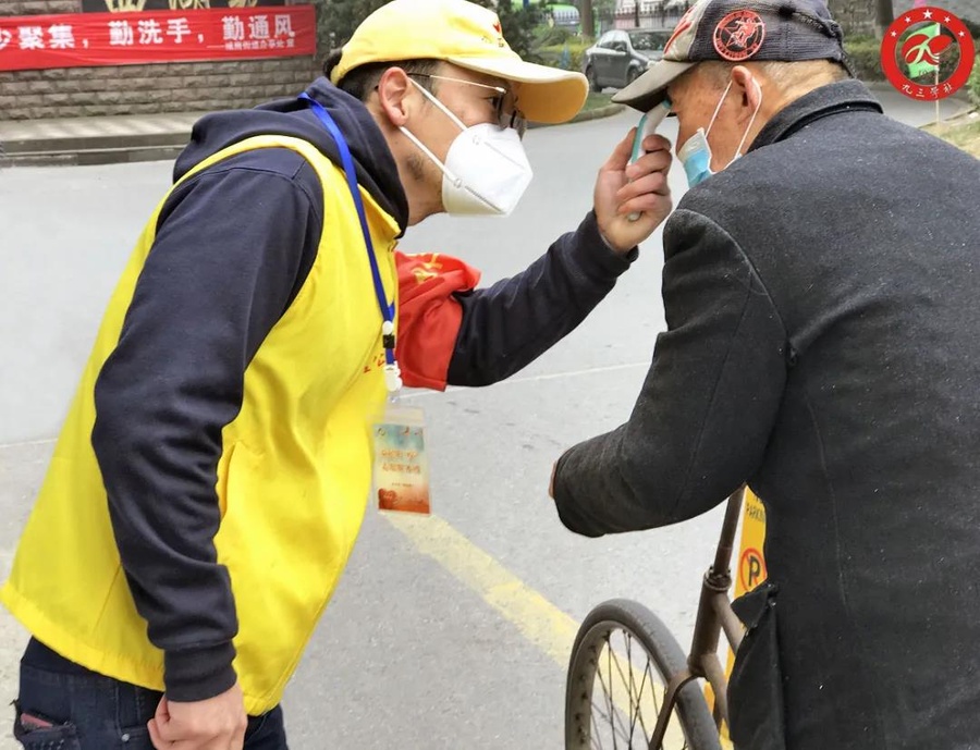 他和九三红星公益团队的身影出现在小区门卫卡口,负责为小区进出人员测量体温和查验外来人员信息。春节期间,寒潮多次来袭,在凛冽的寒风中长时间的站立,即使戴上帽子和手套也冻得人瑟瑟发抖。张佐铭说,站久了手脚都是僵硬的,但他们每一个志愿者从未想过放弃,比起奋战在一线的医务人员,他们做的微不足道,站在这里,穿上志愿背心的那一刻,肩上就担了责任。