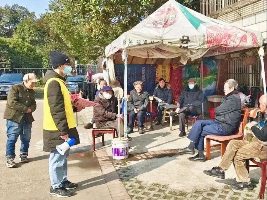 他和九三红星公益团队身影出现在小区内部菜场和公共活动区域,劝说老人们买好菜就赶紧回家,非常时期不买菜的就不要出来蹓跶,不要扎推,不要麻将,不能让儿女超心,不能给社区添麻烦,呆在家里是最安全的防护。劝说没戴口罩的居民出门必须戴口罩,爱护自己也是爱护他人。在劝导过程中,最令张佐铭感动的还是人与人之间的理解和相互配合。他说,“经常有一些年轻人主动帮我们劝导一些扎推晒太阳聊天的老人,大家的配合和理解,减轻了工作压力,也让我们对战胜疫情充满了希望。”