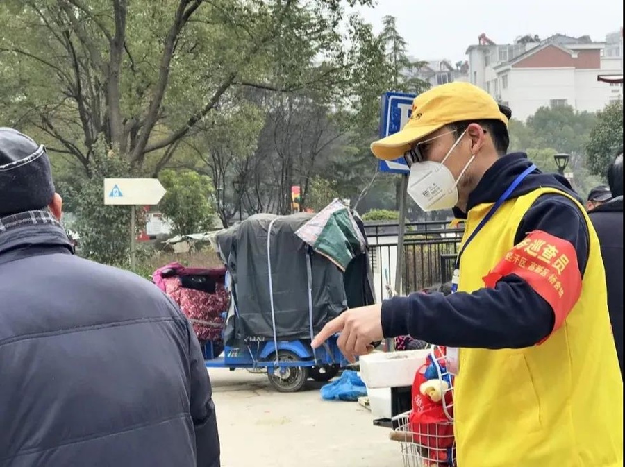 他和九三红星公益团队的身影出现在小区的每一幢楼,每个楼道,全方位宣传,要勤洗手、戴口罩、多通风、少外出,不串门、不访友、不聚集、不聚餐;全面排查,不漏一户不落一人;全天候服务,为居家隔离户、生活困难户、孤老户买菜送饭送口罩等等。当问及张佐铭这样整天忙于奔波累不累时,他说,“其实真没感觉到辛苦,因为忙的来不及想,都忘了这是正月,是中国人最注重的新年,你要问我是初几,是周几,我肯定回答不上来。”