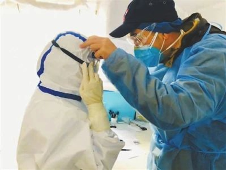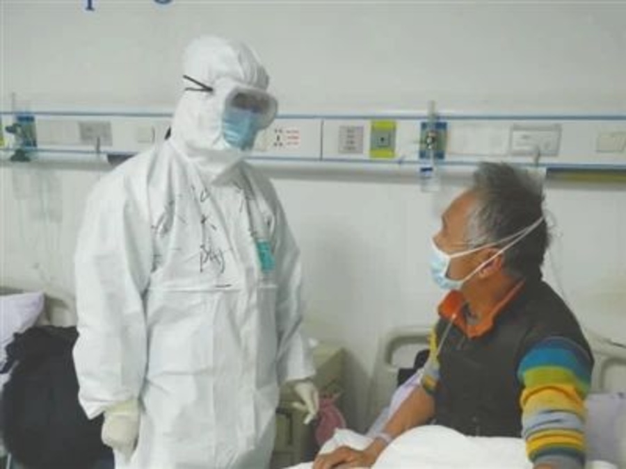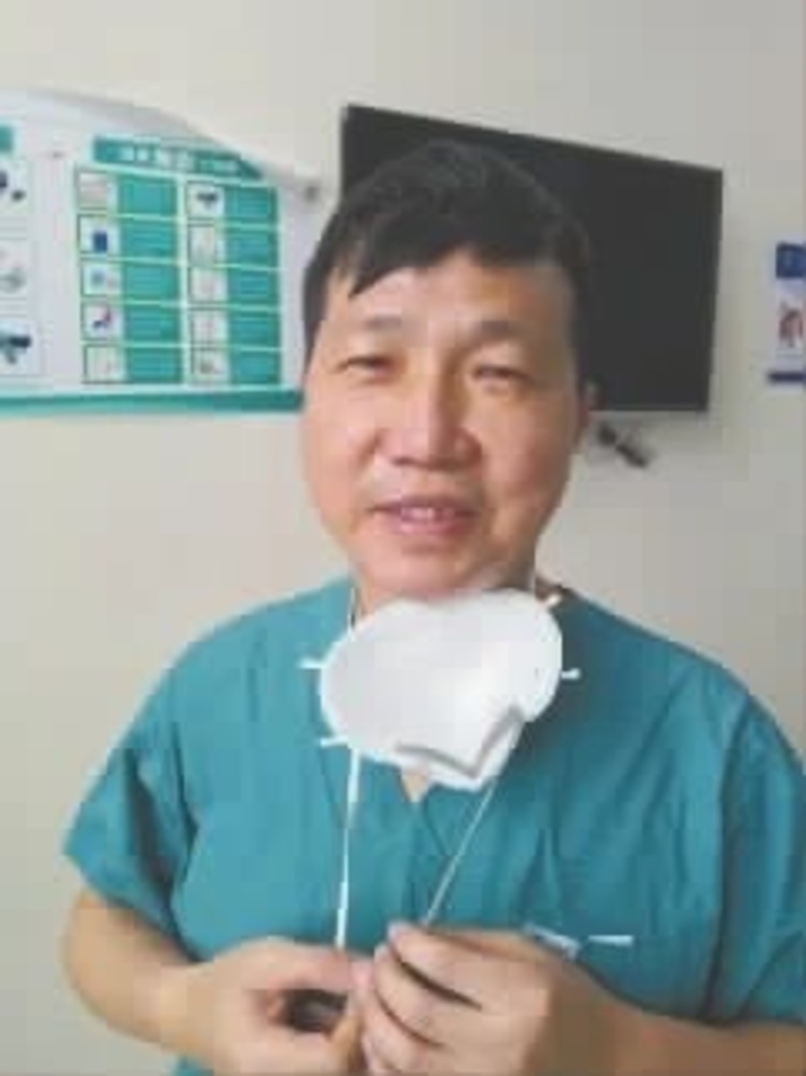 潘红星(左),广东援鄂医疗队队员、汕头大学医学院第一附属医院副主任医师、九三学社社员。