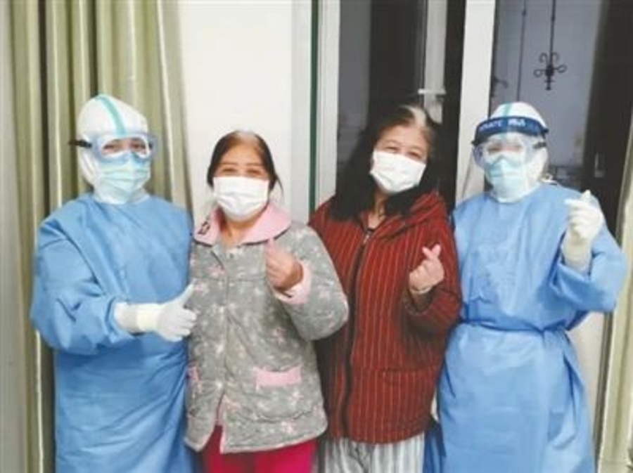 张敏(右二),重庆援鄂医疗队队员、重庆市长寿区人民医院急救重症部护士长、九三学社社员。