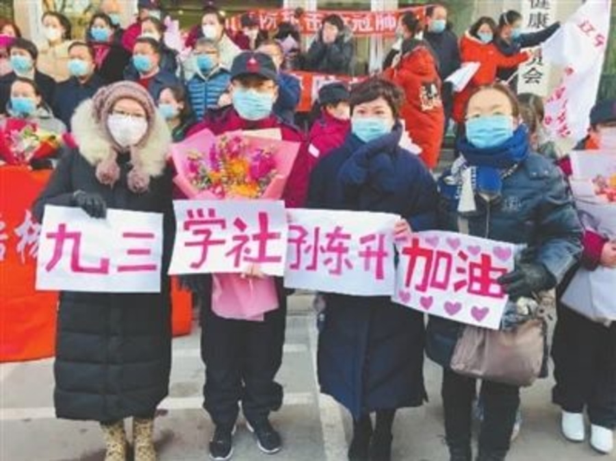 孙东升(左二),鞍山市中心医院立山院区重症医学科主任,九三学社社员。2月9日,九三学社鞍山市委会和双山医院支社为即将出征武汉雷神山医院的他送行、加油。