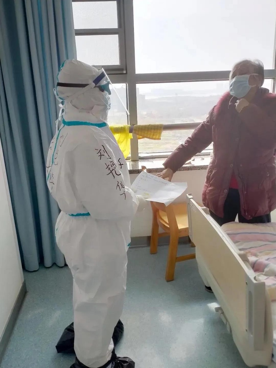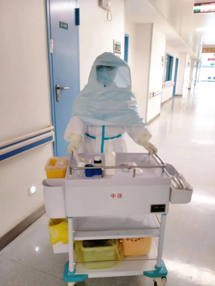 组里29床的阿姨也是我们组的重点病人,由于既往有肿瘤病史,阿姨患病以来特别焦虑,每次查房主诉都很多,我也都非常耐心的和她解释病情,调整用药。今天在我查房结束时她忽然拉住我说“谢谢你”这声谢谢让我泪盈于睫。在忙碌和感动中结束了今天的工作!脱掉防护服感觉很累,很冷,才发觉穿在防护服里面的衣服已经湿透了。