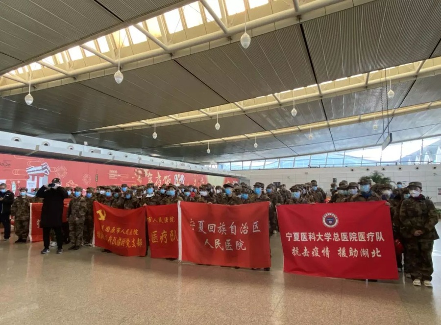 宁夏援鄂抗疫医疗队在机场集结准备出发