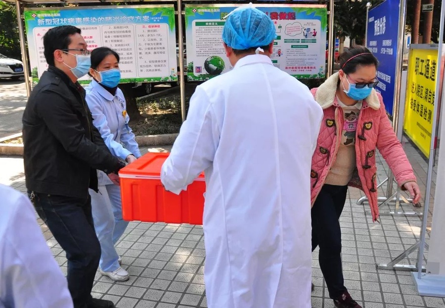 2月13日中午,九三学社攀钢二支社主委吴洪英因参加紧急视频会议委托副主委唐毅将15盒荤素搭配、营养美味的盒饭及抗“疫”物资送到了密地院区预检分诊处前。这样的盒饭配送将持续14天。