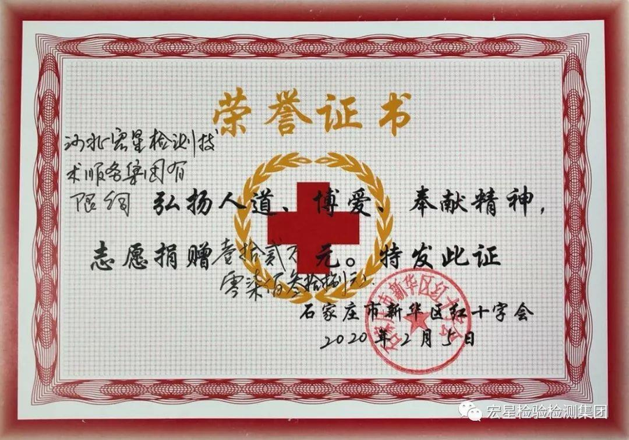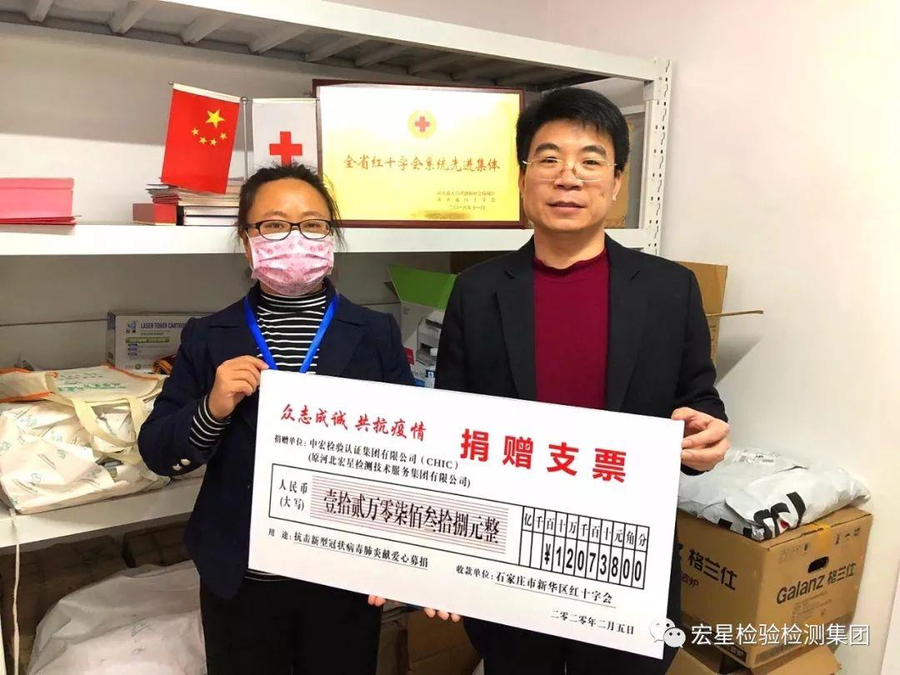 发布爱心募捐倡议书后李根同志率先捐出十万元爱心款并号召全体员工踊跃捐款,截止到 2 月 4 日中宏集团(CHIC)共募捐 120738 元整,2 月5日李根同志亲自将本次献爱心募捐回执单及捐赠清单送至石家庄市新华区红十字会。