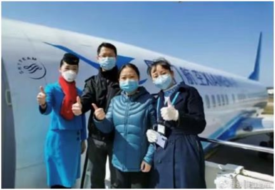 厦航包机拟将200多名湖北籍旅客从泰国曼谷、马来西亚打基纳巴卢接回武汉。社员、厦门大学附属中山医院副主任医师郭峰受厦门市卫健委委派参与前往泰国接机保障防疫任务,1月31日上午九点多接到任务,在短短一个半小时内做好一切准备,迅速赶到机场;到达泰国曼谷后,为76名湖北籍旅客测量体温并接他们返回武汉,身着防护服的他12小时滴水未进。