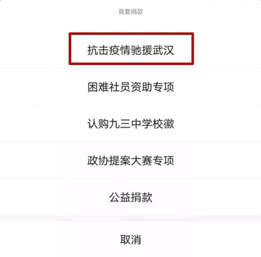 今天,抗击新型冠状病毒肺炎专项基金方案正式上线,衷心希望我们每一位九三学社的社员同志、每一个基层组织能够给予关注,呼吁大家奉献爱心。