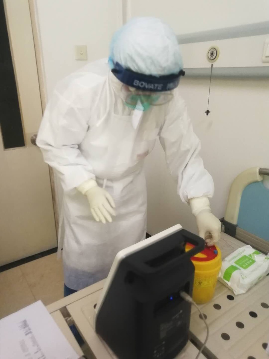 2月13日,隔离病区一位患者突然病情危重,在专家组的指导下,医护人员争分夺秒投入到与“死神”的较量中:及时为病人进行气管插管,血气分析检测都要到病人床旁操作。员金利毫不迟疑说:“我去!”他穿好防护服来到重症监护病房,与同事配合安装测试仪器,开始检测标本……从接到标本到发出报告仅用了不到20分钟。就这样他在重症病房坚守了8个小时,直到患者转危为安。