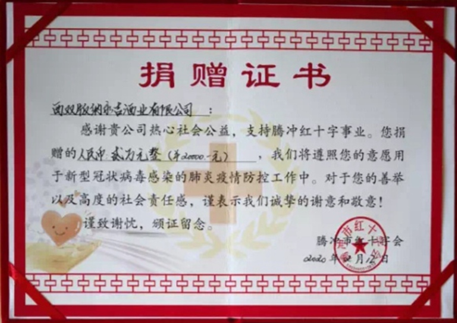 九三学社社员、西双版纳永吉酒业有限公司总经理张艺耀,继1月31日向西双版纳边防支队捐赠一万只医用口罩后,又向腾冲红十字会捐赠人民币2万元,用于腾冲的新冠肺炎防控工作。同时,社西双版纳基层委周浙昆、文加林、殷建涛、杨馗等部分社员还向“王选基金武汉专项”捐款1700元用于抗击疫情。九三学社社员、太平洋保险西双版纳分公司业务经理张建伟向景洪市场监督局捐赠84消毒液5桶,价值一千余元。