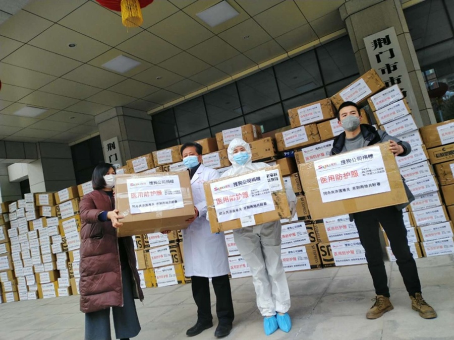 2月18日13时许,一辆从北京出发,满载着价值近百万元、共计4000多套医用防护服的厢式货车终于到达荆门疫情防控指挥部,这已经是搜狗公司向荆门市冠状病毒防控一线捐赠的第七批医疗物资。参与搜狗公司捐赠物资接收的中共荆门市委常委、常务副市长赵俊十分感动,再一次对搜狗公司大爱助荆门的义举竖起了大拇指!九三学社荆门市委主委、市政协副主席刘国芳紧握着负责物资运输的丁师傅的手说:“搜狗公司的这份情,300万荆门人民永远记着!