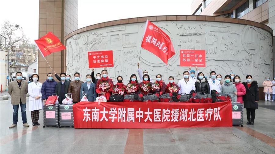 2月11日下午,江苏省支援湖北黄石医疗队出征。东南大学附属中大医院6名重症医学科、呼吸科、感染管理科专家及骨干精英随队驰援黄石。中大医院副院长、著名重症医学专家黄英姿主任医师担任江苏省支援黄石医疗队医疗救治及专家组组长。