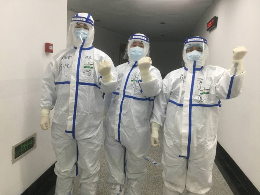 2月13日,安徽省第四批支援湖北医疗队集结完成,向武汉进发。九三学社社员李成聪带着九三人的牵挂和祝福随队出发,此时淮南社员鲁明刚刚经历了在武汉体育馆方舱医院的第一天值班。