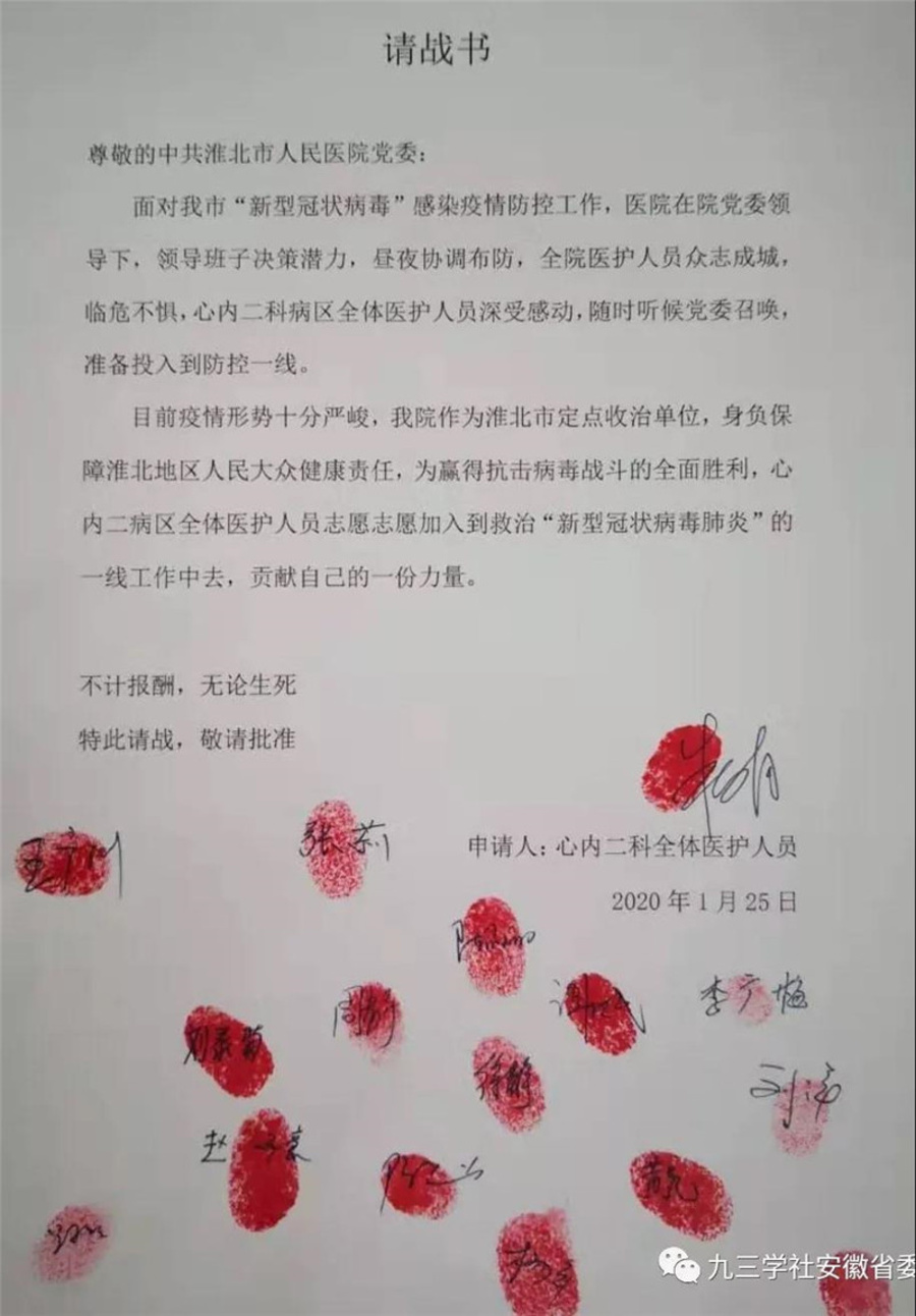 合肥市滨湖医院急诊科主任孟令毅,作为医院新型冠状病毒性肺炎防控领导小组和医疗救助专家组成员,一直在抗击疫情第一线战斗。合肥市第二人民医院医务科赵昊处长、外科汪杰主任等社员纷纷递交请战书。入社积极分子陈良,去年到武汉协和重症监护进修学习,一直在武汉当地抗击疫情,过年都没有回来和家人团聚。