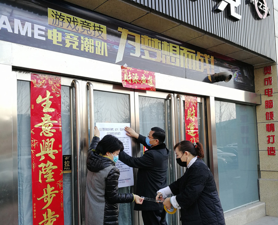 对某游戏厅张贴暂停营业公告