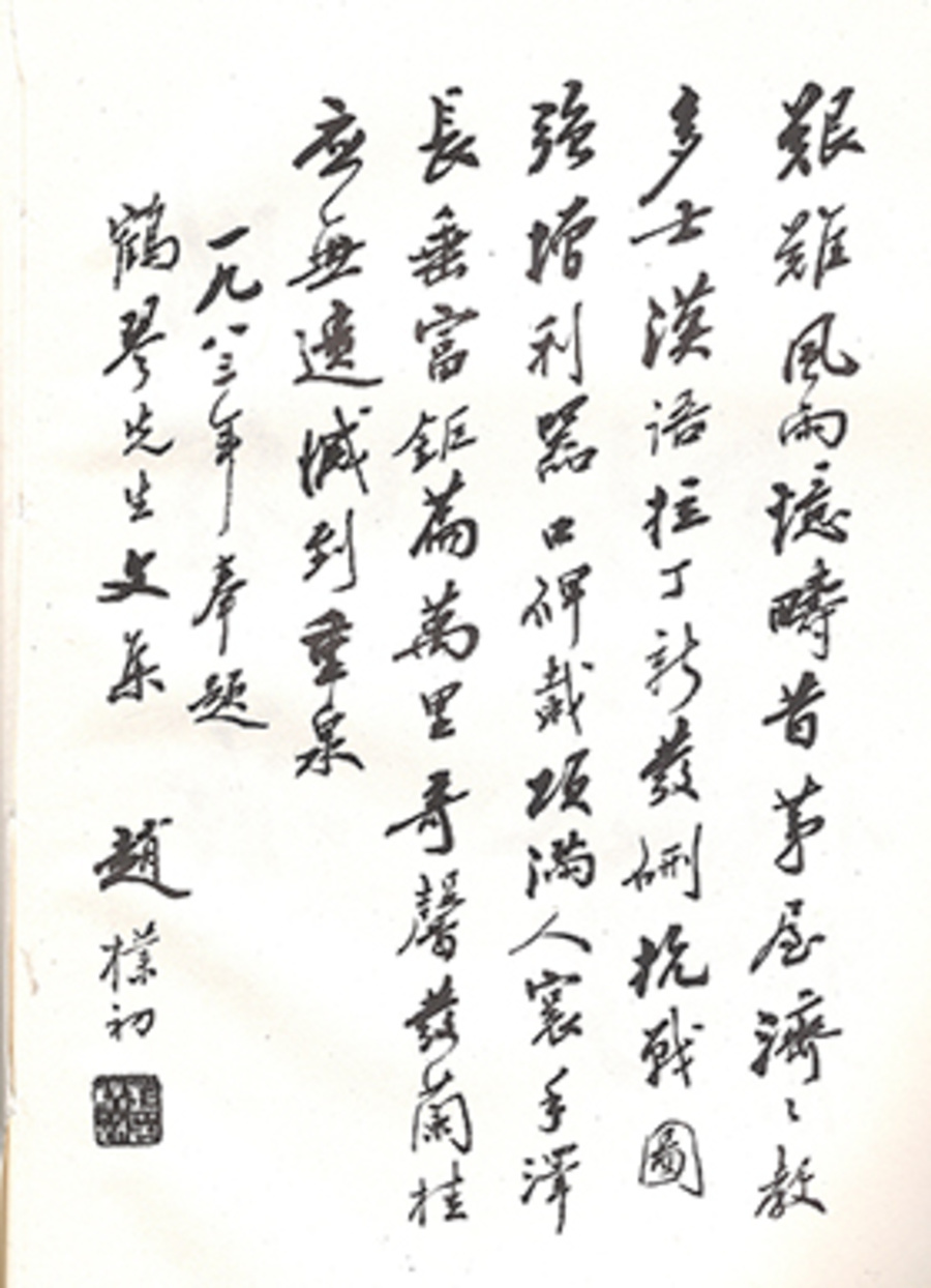 1940年1月的一个风雪交加的下午,由于所带路费很少,我只好到青年会旅馆去请求免费住一夜。服务员安排我住在走廊里,在炉边烤火。坐到9点钟左右,有人叫我到一间房间去会见一位50岁左右的老先生。这位老先生详细询问我来宁波的经过,然后拿出10块钱交给我做路费。我含着眼泪接过这张宝贵的钞票,同时请他告诉我姓名。他翻出了一本书,指了指封面上作者的名字,上面写着陈鹤琴三个字。我才知道,我有幸遇见了一位知名的教育家。