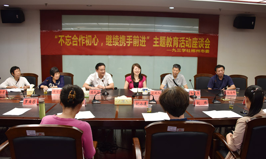 你家有几个九三社员?或许这个问题有些突兀,但是在郴州九三大家庭中,有30多名特殊群体社员,他们有的是夫妻社员,有的一家三口都是社员,有的是父子社员、父女社员、母女社员、母子社员、姐妹社员,他们为郴州九三的发展和壮大贡献了智慧和力量。9月3日下午,在九三学社建社74周年这个特殊而美好的日子里,九三学社郴州市委召集这群特殊社员召开“不忘合作初心,继续携手前进”主题教育活动座谈会,郴州市政协副主席、九三学社郴州市委主委潘执坤出席会议。